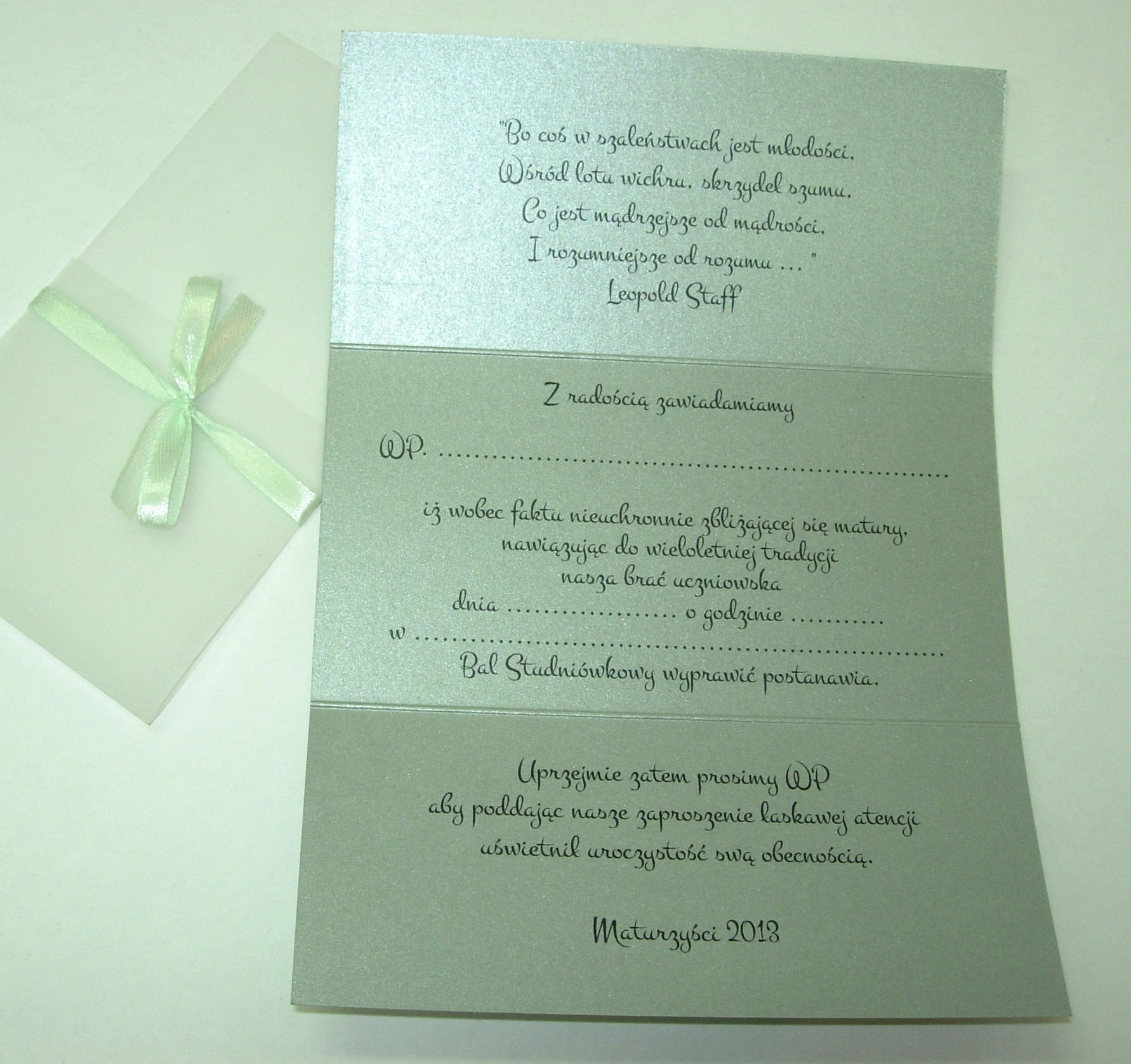 Zaproszenie na studniówkę STU06 » Sklep Biała Oficyna Łódź Poligrafia
