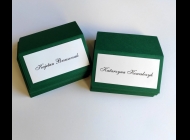 Eleganckie, szykowne winietki na pięknych papierach do wyboru, podklejone dodatkowymi ramkami / warstwami. Podklejki są dowolne, może to być perłowe złoto lub srebro a także mirror lustrzane srebro i złoto. Mogą to też być papiery matowe np butelkowa zieleń / szałwia połączona z białym itp itd - pełna dowolność, produkty ze zdjęć to tylko przykłady, kolory mozna dowolnie mieszać, zmieniać