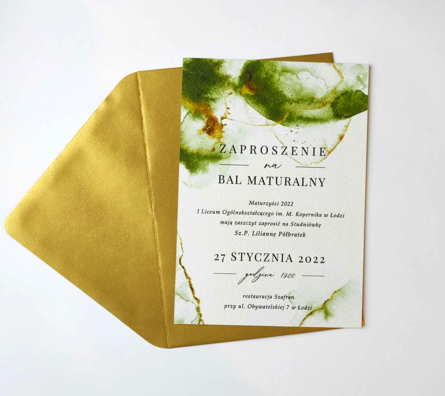 Nasze nowoczesne i modne zaproszenia na studniówkę wykonane są na pięknych papierach najwyższej jakości o gramturze około 240 g.